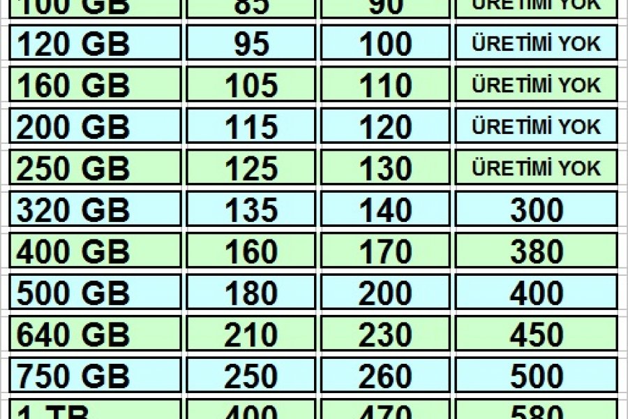 LAPTOP HARDDİSK İKİNCİEL FİYAT LİSTESİ (TL)